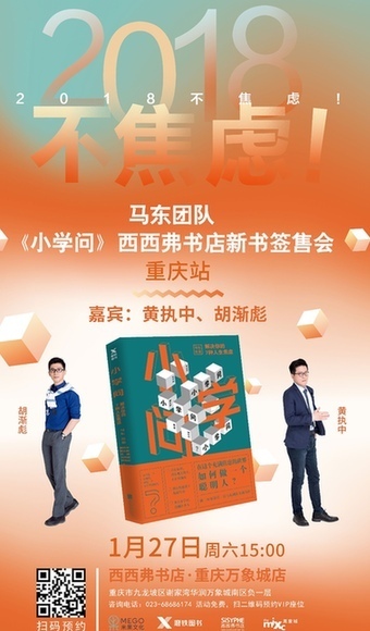 ????內(nèi)容介紹:這不是一個小時代,這是一個小學問的時代。只有知識,沒有觀點的人,正在被淘汰。別讓焦慮毀了你的生活,懂點小學問,超越許多人。全書共有7個“小學問,”每一則“小學問”里,每一個知識點既有應用場景,又有解釋力度,還能遷移到其他領域,以及足夠輕巧有趣。《奇葩說》名辯黃執(zhí)中、胡漸彪將做客西西弗書店·重慶萬象城店,與你分享《小學問》。