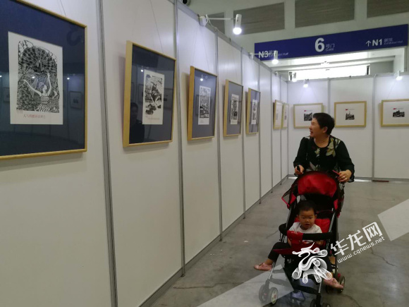 記者看到,展區(qū)陳列了川美版畫系師生創(chuàng)作的《鐫刻宏偉藍(lán)圖·鑄就偉大夢想——中國特色社會(huì)主義基本方略黑白木刻作品》《山水之城·美麗之地——版畫繪重慶作品集》等三個(gè)套系的作品,共計(jì)76幅?!懊刻於家玫魞扇砑垼忻駞⑴c熱情非常高?!卑娈嬒荡笕龑W(xué)生魏楨和她的同學(xué)們一起在現(xiàn)場為參與市民指導(dǎo),魏楨向記者介紹,制作一幅版畫需要較長時(shí)間,每一刀都凝聚著制作者的心血,為了保護(hù)好這些木刻版畫,市民拓印作品前需要經(jīng)過他們完成打勻油墨、鋪放皮宣這些工序后,再由市民自己動(dòng)手拓印。魏楨說,每天都有不少市民參加,感覺最累的地方是胳膊。不過,看到市民對(duì)版畫藝術(shù)有這么濃厚的興趣,覺得很開心,再累也值得。