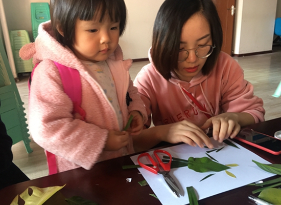 本次活動共分為兩部分。第一部分,由巾幗志愿者介紹植物貼畫的制作方法并向大家展示已做好的貼畫成品,以啟發孩子們多思考,多創新。接著,在志愿者的帶領下,引導孩子們觀察提前準備好的素材,構思作品。第二部分,由孩子們利用大自然的花葉植物,充分發揮其自身的顏色和紋理,通過剪貼等方式打造出多姿多彩的畫作。經過一番細致動手粘貼,“歡樂老鼠”、“魚戲荷塘”、”海底世界“等一幅幅童趣作品“新鮮出爐”。