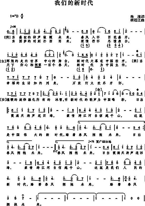 “新時代的氣象是壯闊和豪邁的,同時新時代的變化又能讓每一個中國人親身感受到,是親切的。”曲作者胡廷江說,歌曲從這兩個方面確立整體風格,旋律婉轉高亢,伴奏豪邁雄壯。同時,旋律風格有別于常規的美聲歌曲,呈現了一定的通俗化特征。