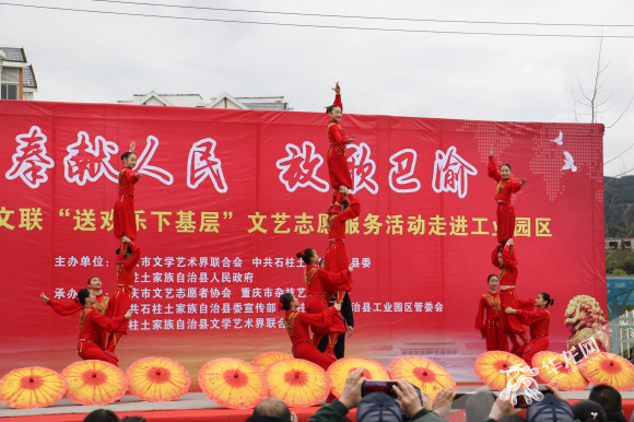 重慶文藝網(wǎng)12月6日19時(shí)45分訊(記者 樊國(guó)生)笑一笑十年少,樂(lè)一樂(lè)更快活。今(6)日,由重慶市文聯(lián)、石柱縣委、縣政府主辦,重慶市文藝志愿者協(xié)會(huì)、市雜協(xié)、石柱縣委宣傳部、縣文聯(lián)、縣工業(yè)園區(qū)管委會(huì)、三河鎮(zhèn)政府承辦的“重慶市紅色文藝輕騎兵‘送歡樂(lè)下基層’文藝志愿服務(wù)”活動(dòng),分別走進(jìn)石柱縣三河鎮(zhèn)和縣工業(yè)園區(qū),給鎮(zhèn)村居民、園區(qū)員工帶去歡樂(lè)。