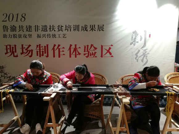 據悉,2018年9月至11月,由山東省援助經費,重慶市文化和旅游發展委配套并聯合相關部門實施,在重慶市萬州區、巫溪縣、彭水縣、酉陽縣四個貧困區縣舉辦了四期魯渝扶貧非遺(刺繡)培訓班,4家刺繡企業對199名來自四個貧困區縣的學員進行了為期一個月的集中培訓。
