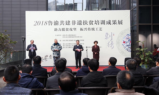 12月18日,2018魯渝非遺扶貧培訓成果展在市群眾藝術館展廳舉行,共有526件學員作品參展。開展前,市文化旅游委黨委書記、主任劉旗與山東省扶貧協作重慶干部管理組組長、重慶市政府副秘書長、市發展改革委副主任、市扶貧辦副主任趙峰、山東省文化和旅游廳巡視員李國琳進行了會談,就加強山東、重慶兩地的文化旅游協作等事宜作了深入溝通。開展后,市文化旅游委組織山東省扶貧協作重慶掛職干部、市文化旅游委相關處室及委屬單位負責人,各區縣文化委分管領導及培訓企業負責人,召開了主題為“非物質文化遺產在扶貧攻堅和群眾就業創業中的地位和作用”的研討會,與會人員圍繞主題深入討論,集思廣益,為我市的脫貧攻堅和非遺傳承發展建言盡力。