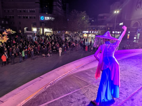 本次演出在重慶兩江藝術團帶來的舞蹈《贊贊新時代》中拉開序幕,優美的舞姿搭配精美的服飾,讓在場的居民們陶醉其中。緊接著歌曲《峽江情》、舞蹈《高山流水》、雜技《晃管》、小品《開心就好》、魔術《奇幻空間》、散打評書《人間百態》等節目接連上演,每個節目的登臺觀眾們都會熱烈鼓掌,盡管在天氣寒冷的環境下,現場的氛圍依舊濃烈。