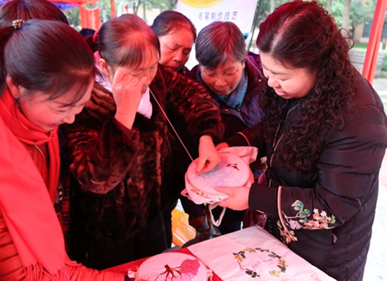 最近,她正在積極參加“我們的中國夢文化進萬家”2019年沙坪壩區流動文化服務下基層演出系列活動,在現場進行非遺展示,讓基層老百姓近距離接觸蜀繡,愛上非遺。