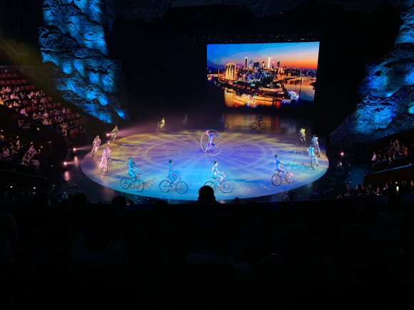 據(jù)悉,雜技秀《星光璀璨》是重慶雜技藝術(shù)團面向旅游人群打造的一臺文旅駐場演出,演出時長50分鐘。該臺演出主要以歷年來重慶雜技藝術(shù)團打造的優(yōu)秀地面、高空節(jié)目為核心,以呈現(xiàn)雜技本體“高、精、尖、難、險、美”的藝術(shù)特性為手段,以聲、光、電、3D技術(shù)、舞臺機械等高科技技術(shù)為輔助,打造的一臺炫酷雜技秀。