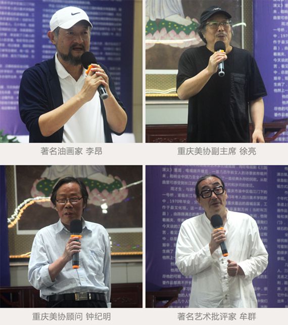 出席本次活動的嘉賓有重慶藝術界泰斗、著名畫家江碧波,原貴州省文聯副主席、著名油畫家李昂,重慶美術家協會副主席徐亮,重慶市美術家協會顧問鐘紀明,四川美院教授、著名藝術批評家牟群,著名服裝設計師梁明玉,著名畫家、雕塑家唐亮,著名詩人金鈴子,重慶江北區美術家協會主席王明義,著名畫家武輝夏、呂效書、蔡循生、張遠華、宋立賢等。