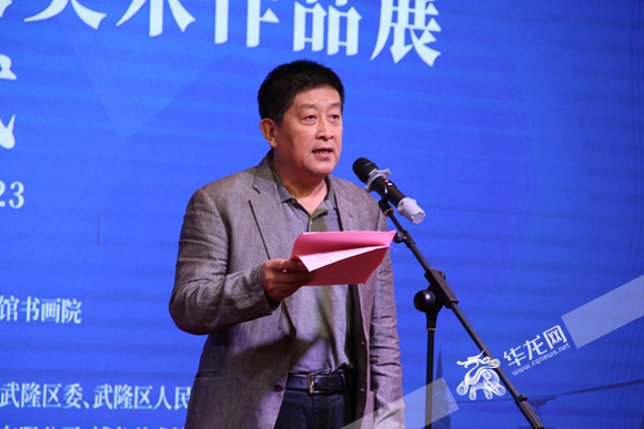 “每一次來重慶,我都能強烈感受到這座城市的變化以及她獨特的氣質。這讓我深感驚喜,也讓我產生了創作的沖動。同時,歷時一年的‘畫重慶’活動得到了不少單位的大力協助,讓我感受到了重慶的耿直熱情和相關各方的高度重視,我深受感動。今天,我們書畫家創作的作品即將接受社會各界的檢閱。我相信這場展覽一定能夠得到廣大觀展者的肯定,我也相信,正在‘山水之城·美麗之地’建設之路上奮進的重慶,一定能夠越來越美!”