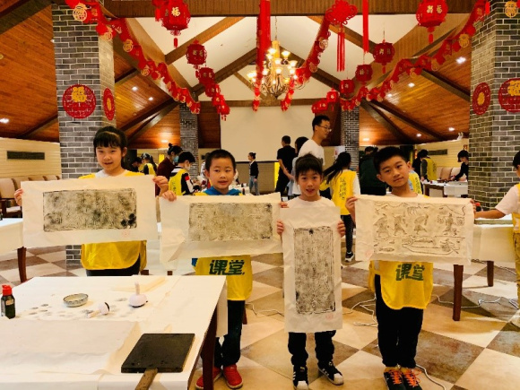 參觀完修復(fù)實(shí)驗(yàn)樓后,市文化遺產(chǎn)研究院文物修復(fù)專家為大家講解拓片知識(shí)。學(xué)習(xí)之后,孩子們?cè)谛迯?fù)人員的指導(dǎo)下和自己的家長(zhǎng)親自動(dòng)手體驗(yàn)撲拓技藝。從噴水到上紙,從上墨到捶拓,他們都干勁十足,認(rèn)真操作。大家用拓包反復(fù)擊打宣紙,在宣紙上陸續(xù)擊打出了畫像磚的輪廓,漸漸地,宣紙上清晰地呈現(xiàn)出了各種畫像磚圖案,一幅幅由各家庭分別制作拓片順利完成,孩子們不僅對(duì)傳拓技藝產(chǎn)生了濃厚的興趣,還在拓片操作中感受到了中華民族的古老文化藝術(shù)。
