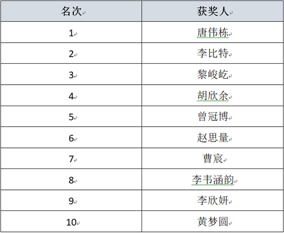 附:獲獎(jiǎng)選手名單